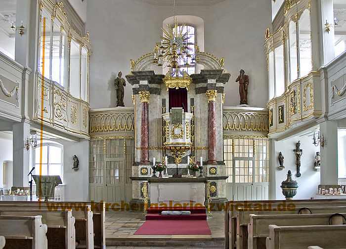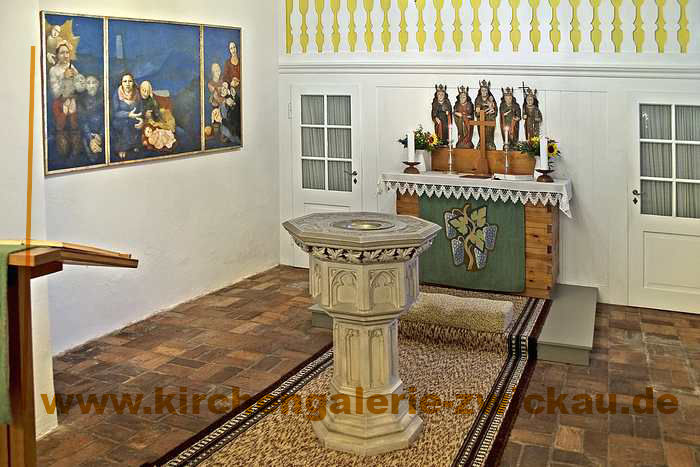Das Alter der Kire iſt ungewiß. Die erſte Kapee könnte 1120 als Wehrkire erbaut worden ſein. Der Triumphbogen iſt no aus romanier Zeit. 1429 wurde die Kire dur die Huſſiten zerſtört und 1432 wieder aufgebaut. Das Holz des Dabodens wird mit 1429 datiert. 1432 erhielt die Kire au 2 Gloen, eine davon zerſprang im Jahre 1867 und wurde neu gegoen, die neue Gloe wurde im 1. Weltkrieg eingemolzen, einen neue Gloe wurde im 2. Weltkrieg eingemolzen. Bis 1900 war der Friedhof um die Kire herum, dann wurde er an den heutigen Pla verlegt.