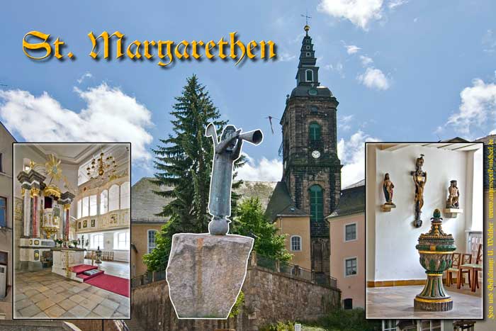Um 1200 wird von einem Margarethenkirlein in Kirberg beritet. Dur die Huſſiten wurde dieſe 1429 zerſtört.. 1496 war ein Neubau abgeloen. Die alte Kire brannte 1757 ab und wurde in den Jahren 1764 bis 1800 wieder aufgebaut, an einigen Steen nd no Reſte des alten Mauerwerks vorhanden. Als letes wurde der Turm voendet. Die Innenausſtaung iſt Baro und wird mit Reſten gotier Snikunſt ergänzt. Ab 1937 wurde die Kire umfaend Reſtauriert. Der Altarpla wurde geändert, die Taufnie wurde geaffen, die Sakriſtei wurde eingebaut, eine Brauthae wurde angebaut und der Fußboden und das Geſtühl wurden erneuert. Bei dieſen Baumaßnahmen wurden die Grabplaen auf der Gru unter dem Altar endet. 1976 wurde der Turm und 1981/82 das Kireniff neu gedet. 1996 erfolgte eine Rekonſtruktion des Turmgebälks. 1998 erhielt die Kire einen neuen Außenpu. 2004/05 wurde die Kire innen neu verput und erhielt einen neuen Anſtri. 2006-2010 Reſtaurierung der Emporen, der Orgel und des Altars mit Neubemalung und Vergoldung I danke Herrn W. Rothenberger für die freundlie Unterſtüung mehr bei: http://www.elkk.de./