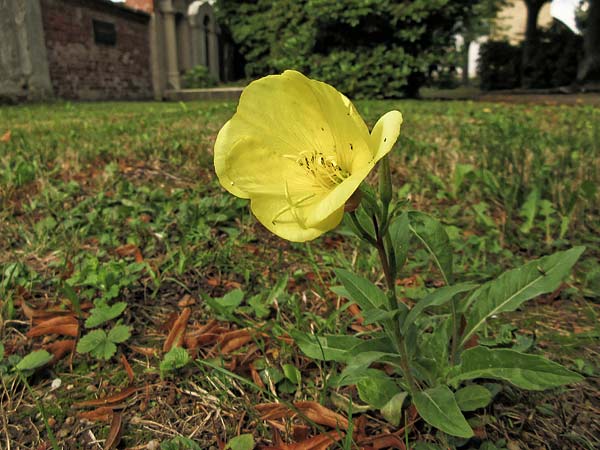 Eine Mini-Nachtkerze hat sich auf den Friedhof verlaufen. Sie ist zwar ein Neophyt (Asylant aus Nordamerika), sieht aber hübsch aus.