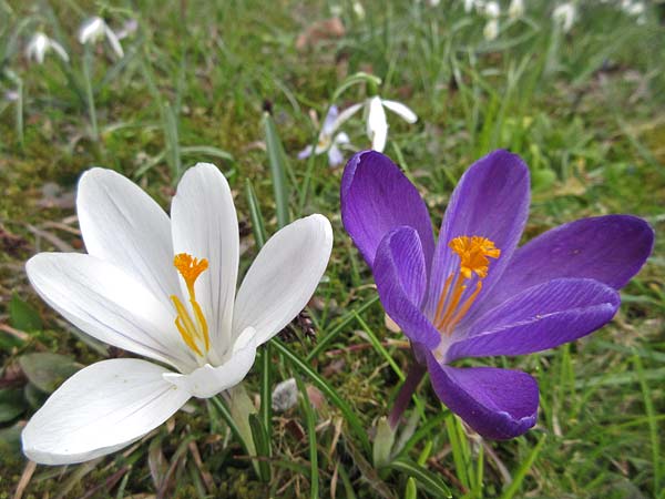 Die Schachbrettblumen blühen. An der ursprünglichen Stelle blühen 5 weiße und eine violette, mit besonders große Blüten. Wahrscheinlich wegen des warmen Winters.